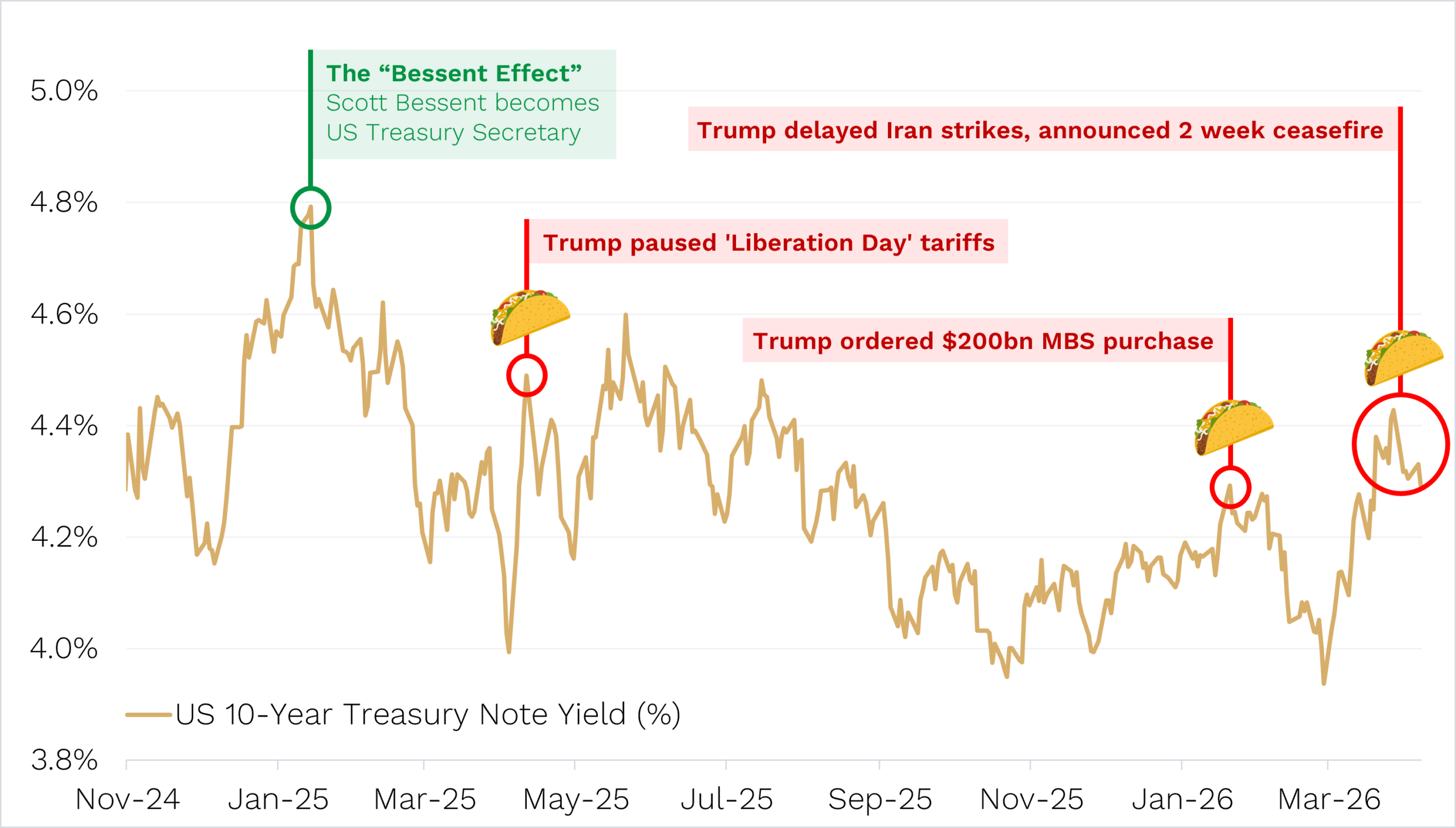 It’s widely speculated that he got a tap on the shoulder from his Treasury Secretary, Scott Bessent, who saw the 10-year bond yield shoot up to 4.5% and warned it would worsen the US’s already ballooning debt costs and fiscal deficit.