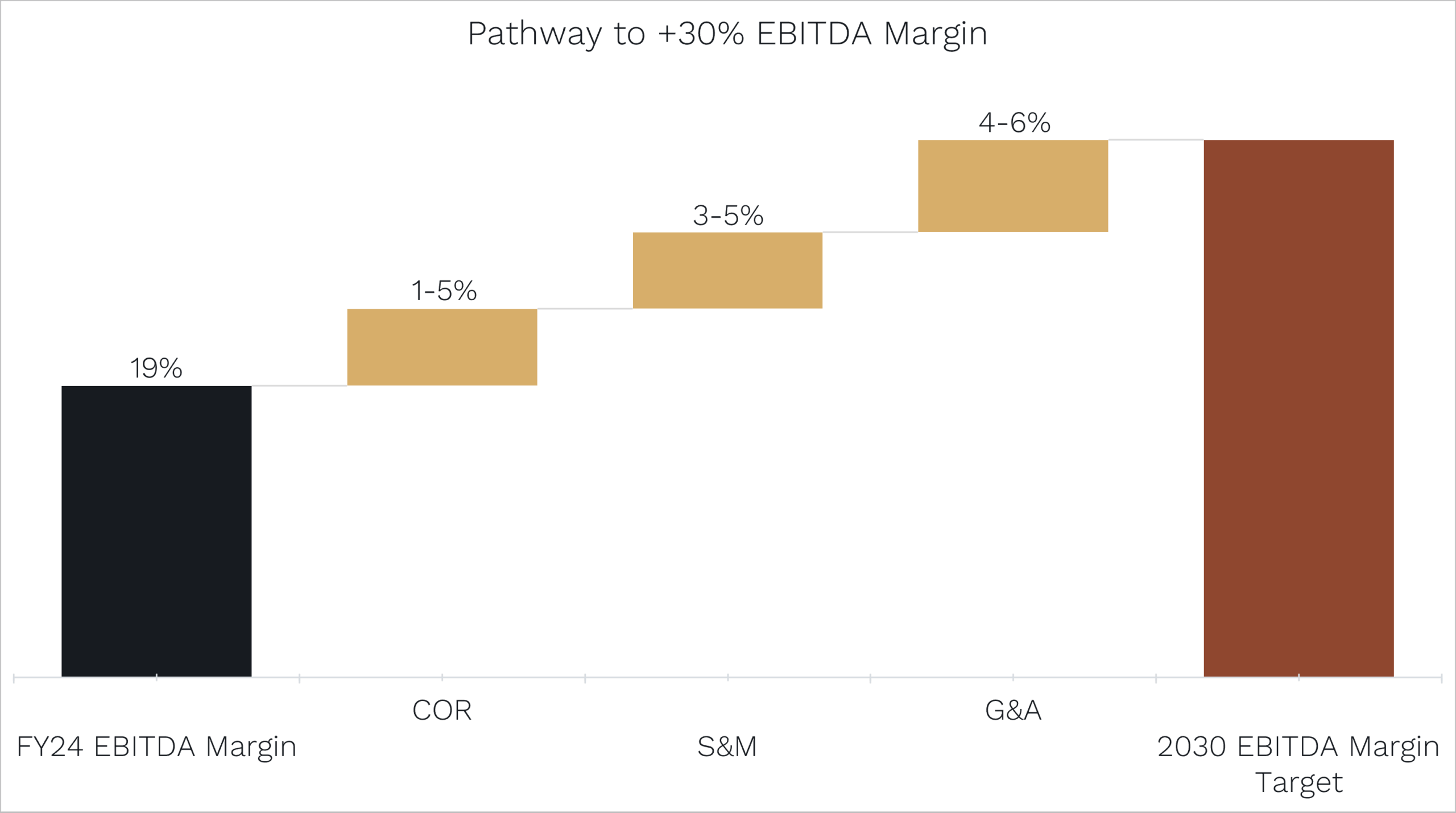 • EBITDA margins in the low 20s, growing toward 30%+ by 2030