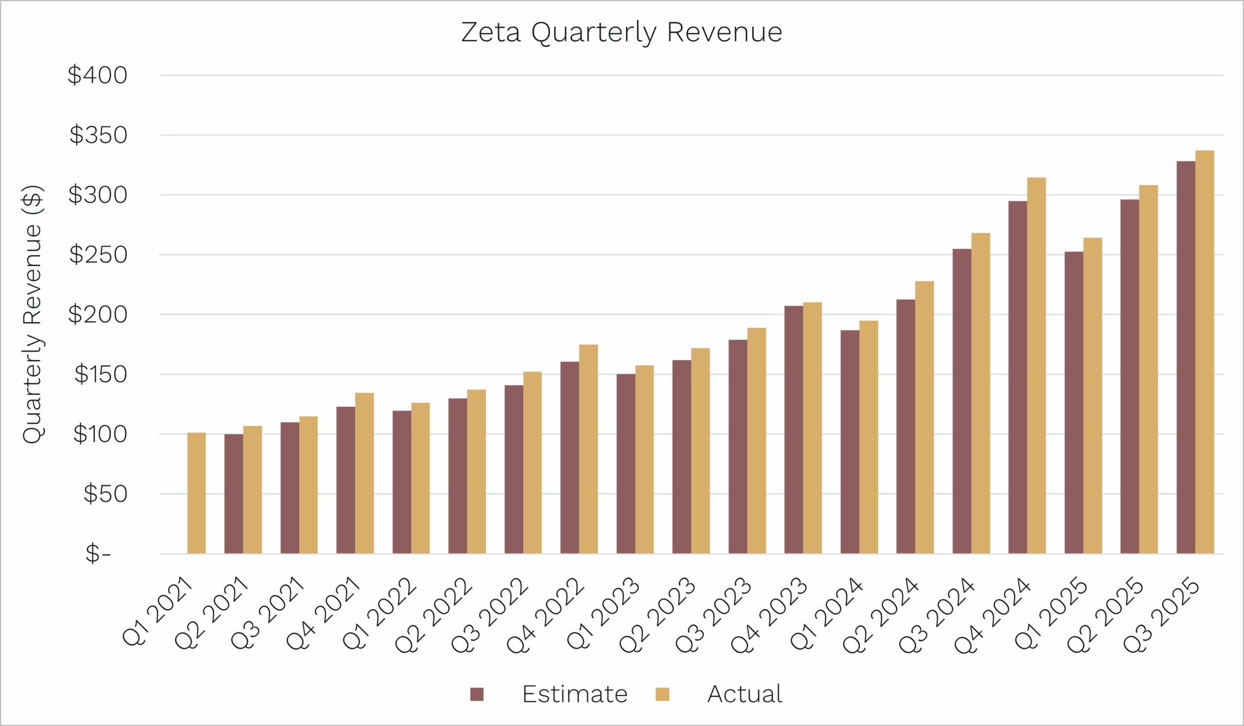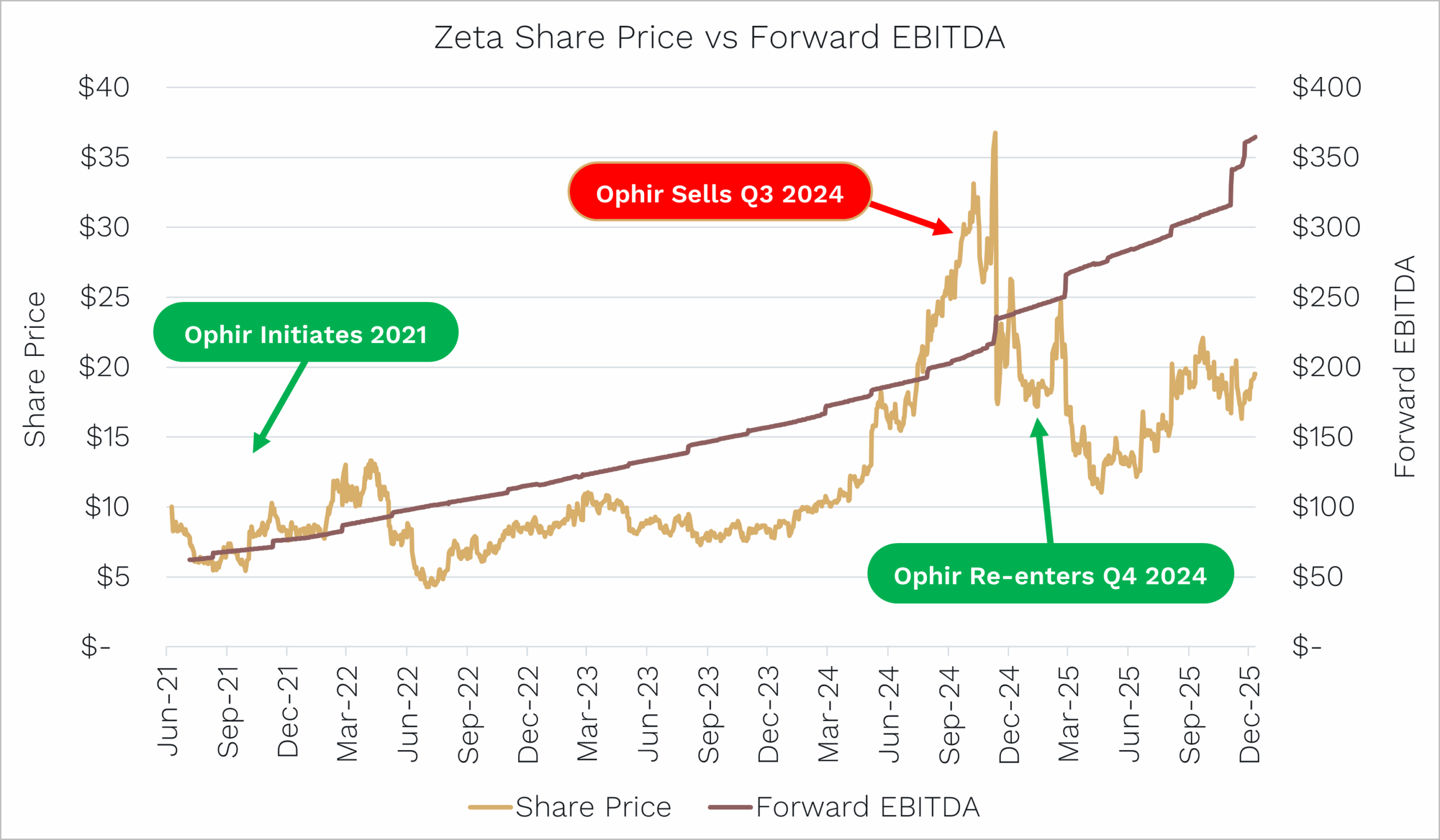 Following the conservative 2025 guide, a short report attacking Zeta’s data integrity was released. This is a classic vulnerability for advertising technology (AdTech) businesses and the stock was sold off aggressively. We had already done deep diligence on Zeta’s data pipeline and knew from customer and partner conversations that the underlying data quality had been reviewed and validated by some of the most sophisticated agency buyers globally.